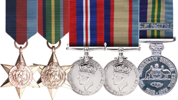 1939-45 STAR + PACIFIC STAR + WAR MEDAL + AUSTRALIAN SERVICE MEDAL + AUSTRALIAN SERVICE MEDAL 1945-75 WITH SW PACIFIC BAR FULL SIZE SWING MOUNTED SET WITH CAST STARS AND DIE STRUCK MEDALS